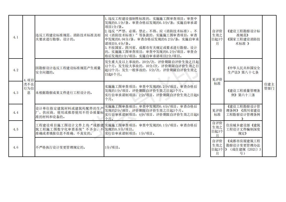 第四条 “成都市建筑市场信用管理系统”(以下简称“信用系统”)将记录建筑工程勘察设计企业的信用信息和评价分数。凡具有独立法人资格,持有住建行政主管部门颁发的工程勘察资质、工程设计资质证书的勘察设计企业在本市行政区域内从事房屋建筑、市政基础设施工程的勘察设计活动,须在信用系统中注册,接受信用综合评价管理。